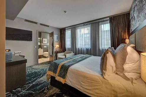 Espaciosas habitaciones con vista calle, de 33 m² que ofrecen un generoso espacio. Disfruta de un baño completo con bañera y ducha separadas. Incluye acceso al Despacio Spa para una experiencia completa de bienestar.